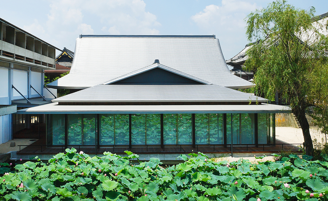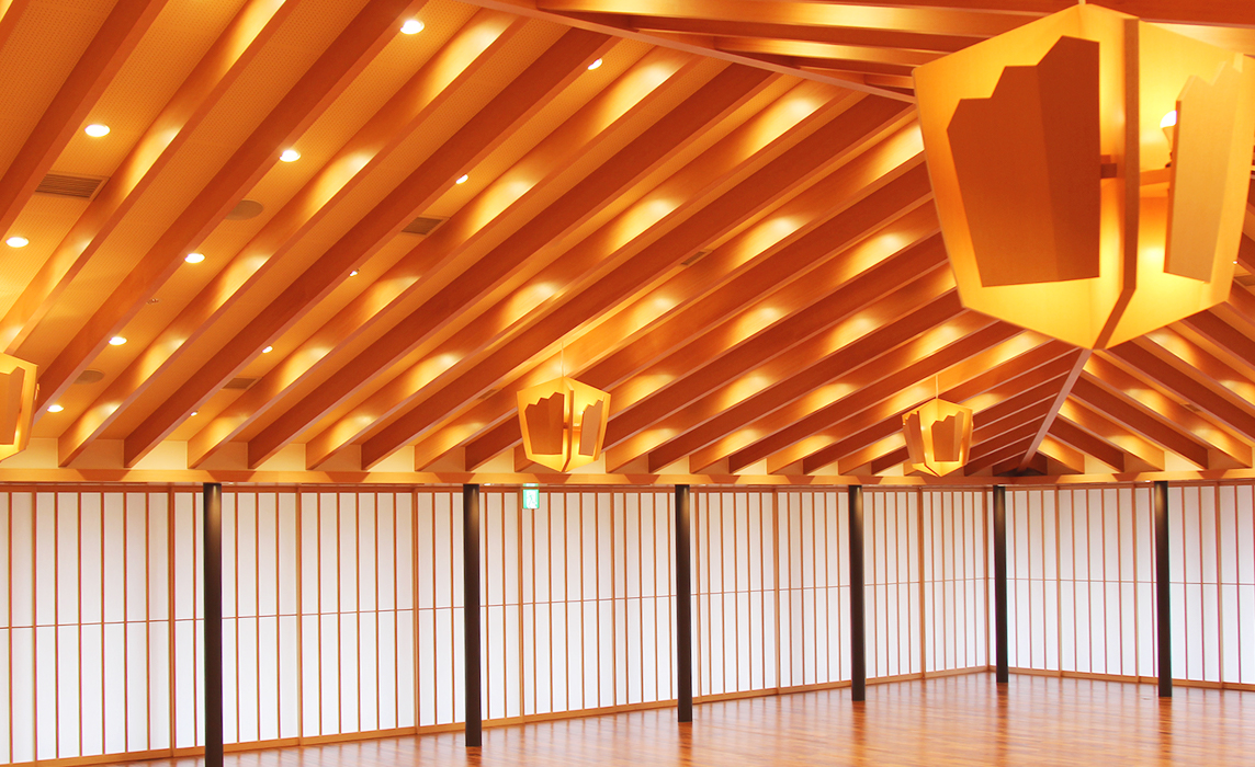 ホールには蓮の花をイメージしたシャンデリアや、現代的な障子のホールを取り入れました。