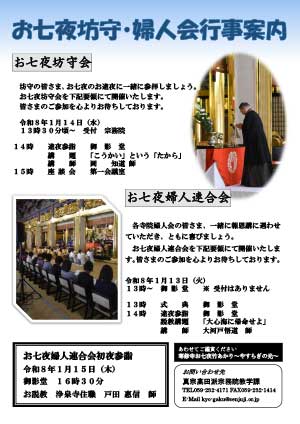 納骨冥加金等の改定 お知らせ