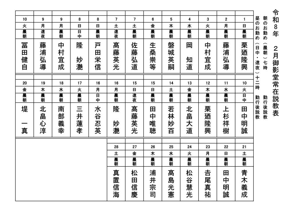 2月御影堂常在説教表